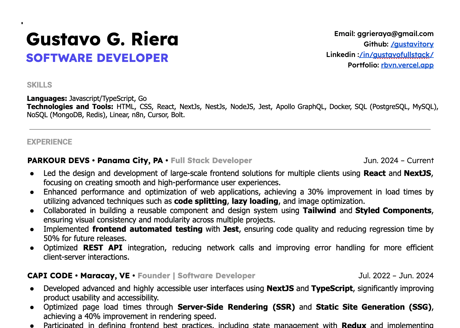 These are the tools and frameworks with which I feel more comfortable without limiting myself to them because I have worked with Angular, Mongo, Go and many more... My main stack is: